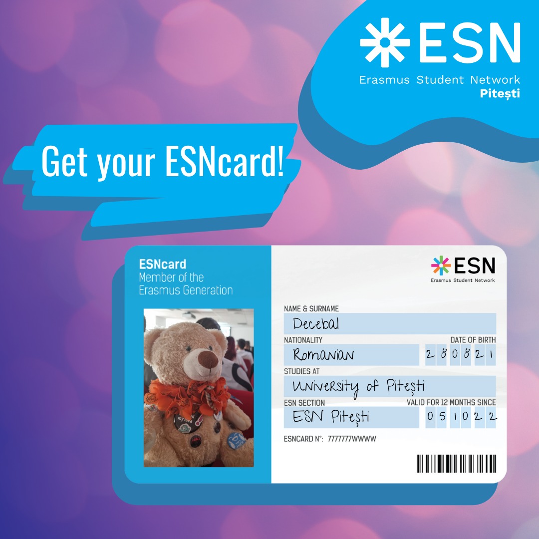 The ESNcard is the membership card of the Erasmus Student Network. It is a proof of membership in an ESN section and so indirectly of the ESN Network. To learn more visit the website ESNcard.org. The ESNcard is also used as a discount card in many cities and countries around Europe.